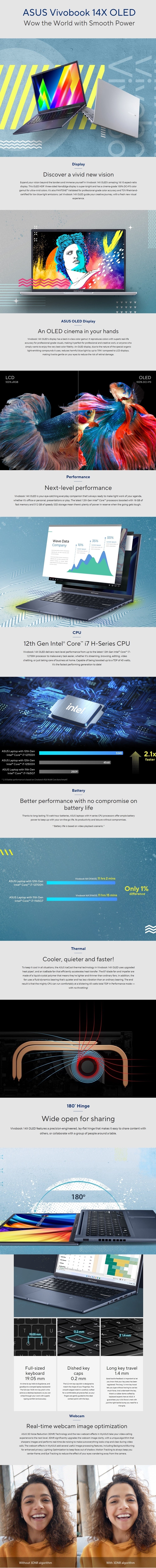 Asus Vivobook 14X X1403ZA-KM116WS 14 OLED Intel Core I5-12500H/8GB DDR4/512GB M.2 NVMe PCIe 3.0 SSD/Win11 Laptop Quiet Blue