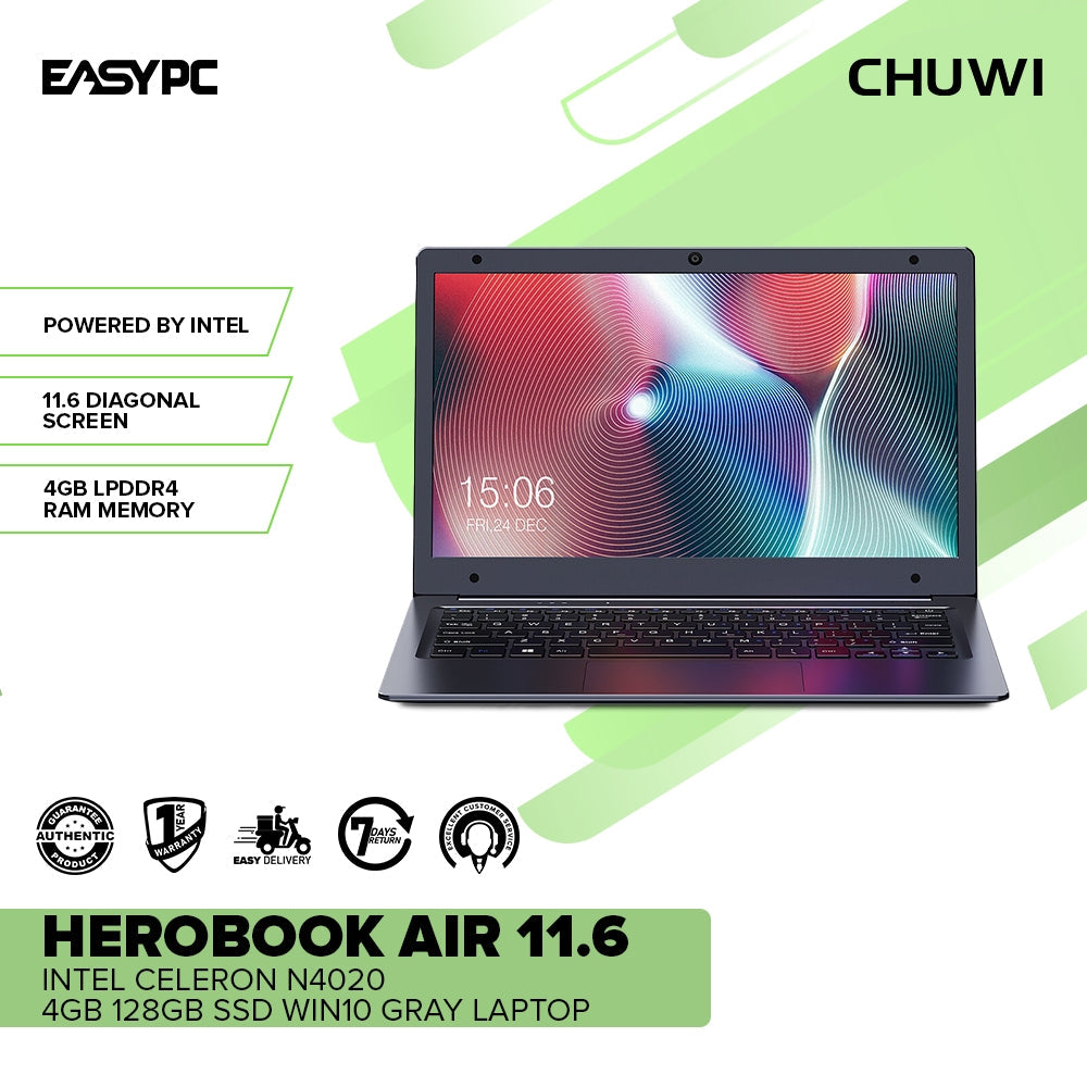 CHUWI HeroBook Air 11.6 Intel Celeron N4020 | 4GB | 128GB SSD Win10 Gray Laptop PS (No Laptop Bag Included)