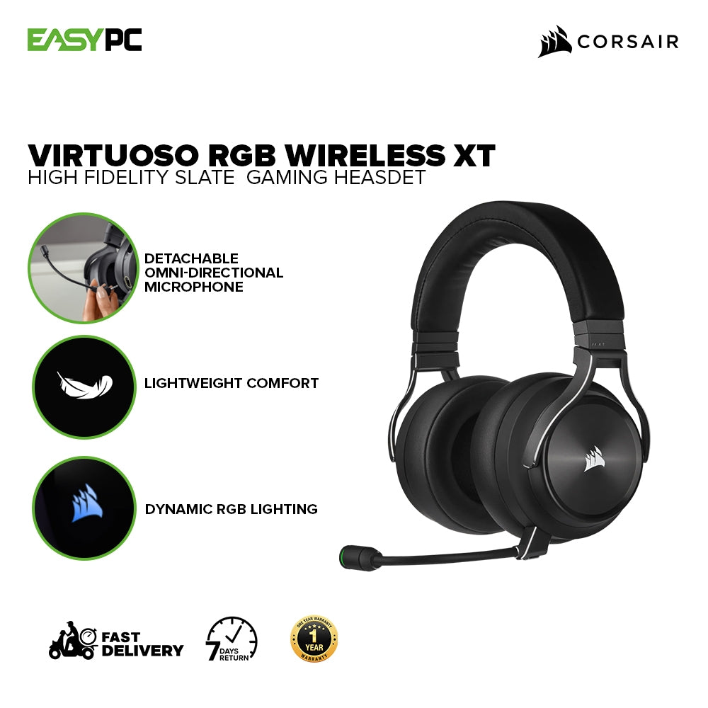 - The CORSAIR VIRTUOSO RGB Wireless XT delivers a high-fidelity audio experience, all-day comfort from its premium memory foam earpads, and simultaneous connectivity with hyper-fast SLIPSTREAM WIRELESS and Bluetooth®.