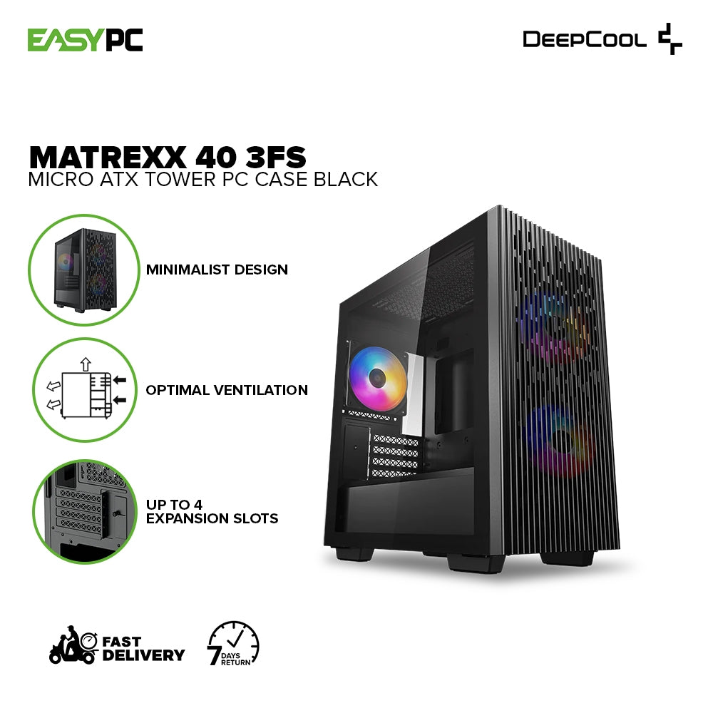 Deepcool Matrexx 40 3FS Optimal Cooling, Tempered Glass Side Panel, Strong and Sturdy Micro ATX Tower PC Case Black