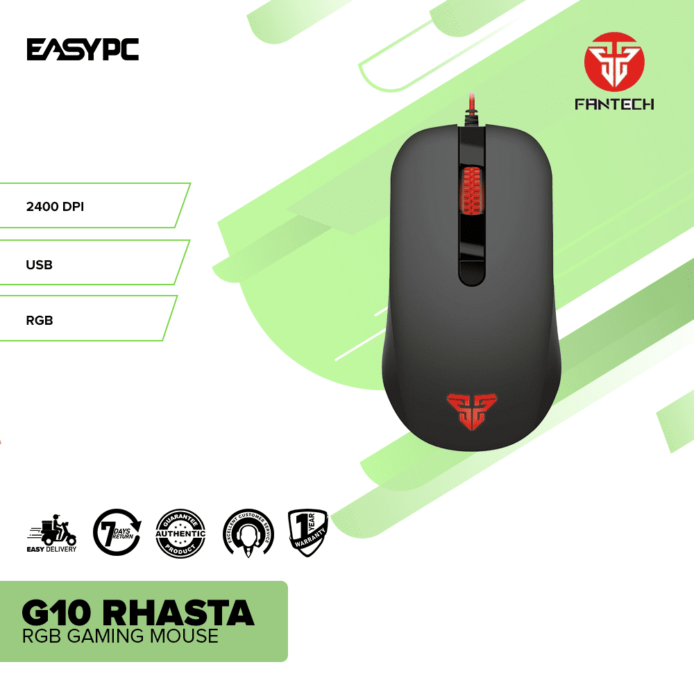 Dominate your gaming battles with the Fantech G10 Rhasta RGB Gaming Mouse. Equipped with precision sensors and customizable RGB lighting, it offers enhanced accuracy and style. Ergonomically designed for comfort during long gaming sessions, unleash your gaming prowess in style.
