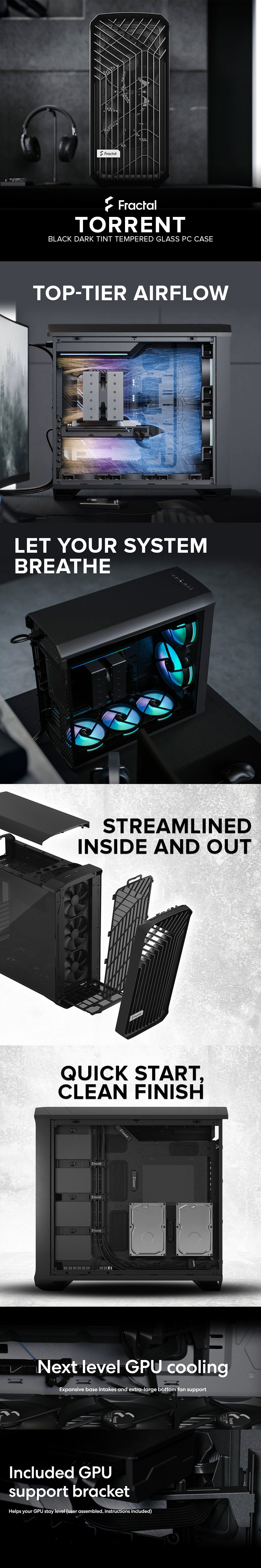 Fractal Design Torrent Open grille and unblocked internal layout Front fan bracket Top Tier Airflow Computer PC Case 4JTP