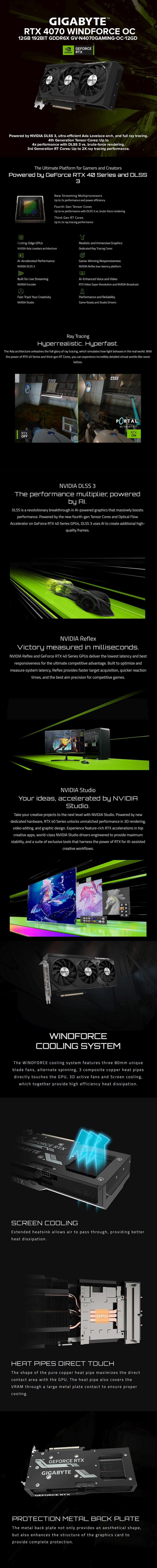 The Gigabyte RTX 4070 Windforce OC 12GB is a formidable video card with 192-bit GDDR6X memory. It offers powerful gaming performance, efficient cooling, and immersive graphics. Elevate your gaming experience with this high-quality graphics card for a superior gaming experience.
