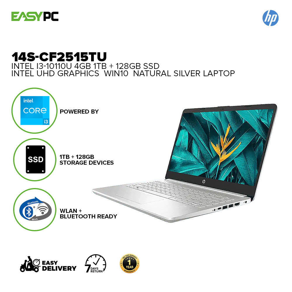 HP 14S-CF2515TU Intel i3-10110U/4GB/1TB + 128GB SSD/Intel UHD Graphics /Win10 Laptop Natural Silver