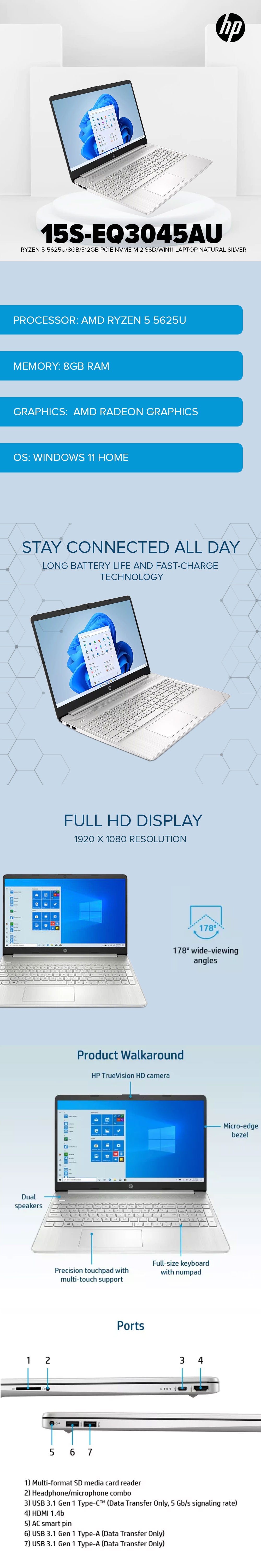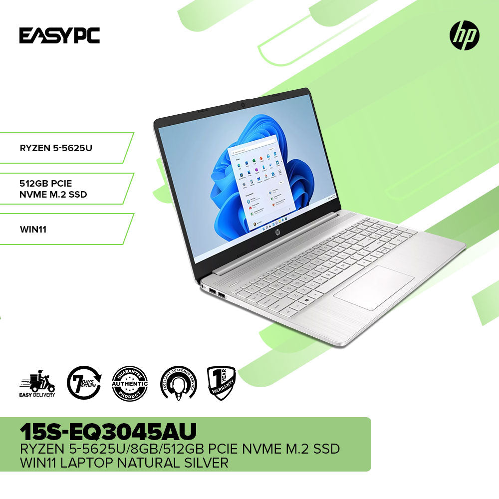 HP Laptop 15s-eq3045AU Ryzen 5-5625U 8GB 512GB PCIe NVMe M.2 SSD Win11 Laptop Natural Silver 1 Year Warranty Budget Laptop Same Day Delivery Brand New