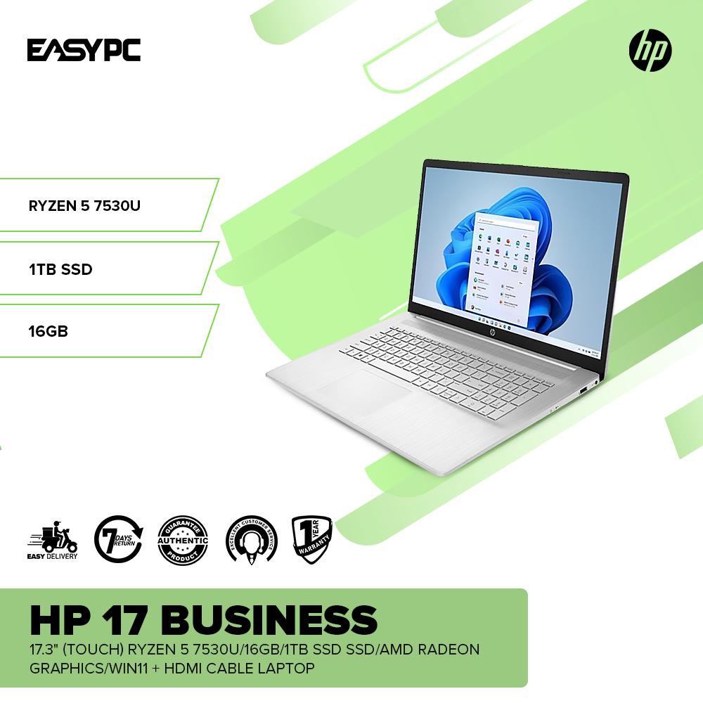 HP 17 Business 17.3″ (Touch) Ryzen 5 7530U/12GB/1TB SSD SSD/AMD Radeon /Win11 + HDMI Cable Laptop PS