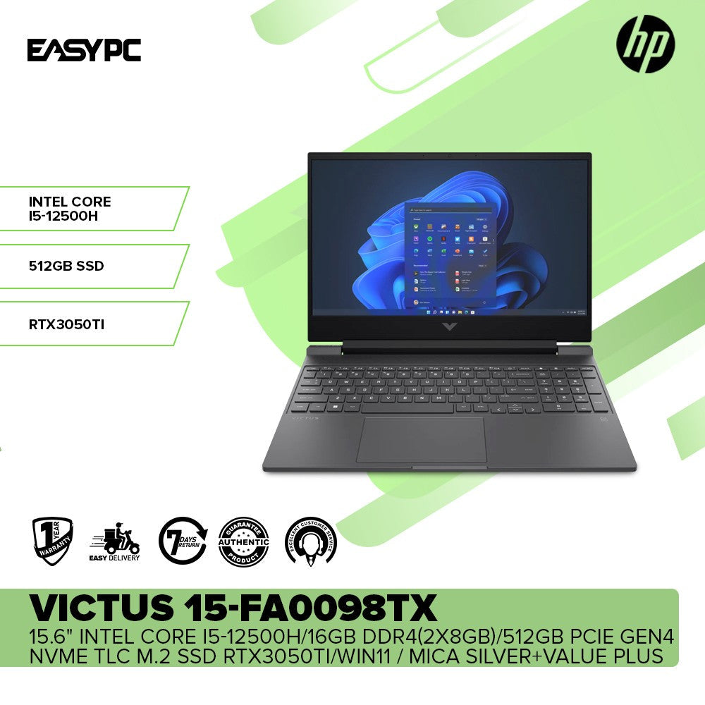 HP Victus 15-fa0098TX 15.6 Intel Core i5-12500H/16GB DDR4(2x8GB)/512GB PCIe Gen4 NVMe TLC M.2 SSD RTX3050Ti/Win11 Laptop Mica Silver + Value Plus