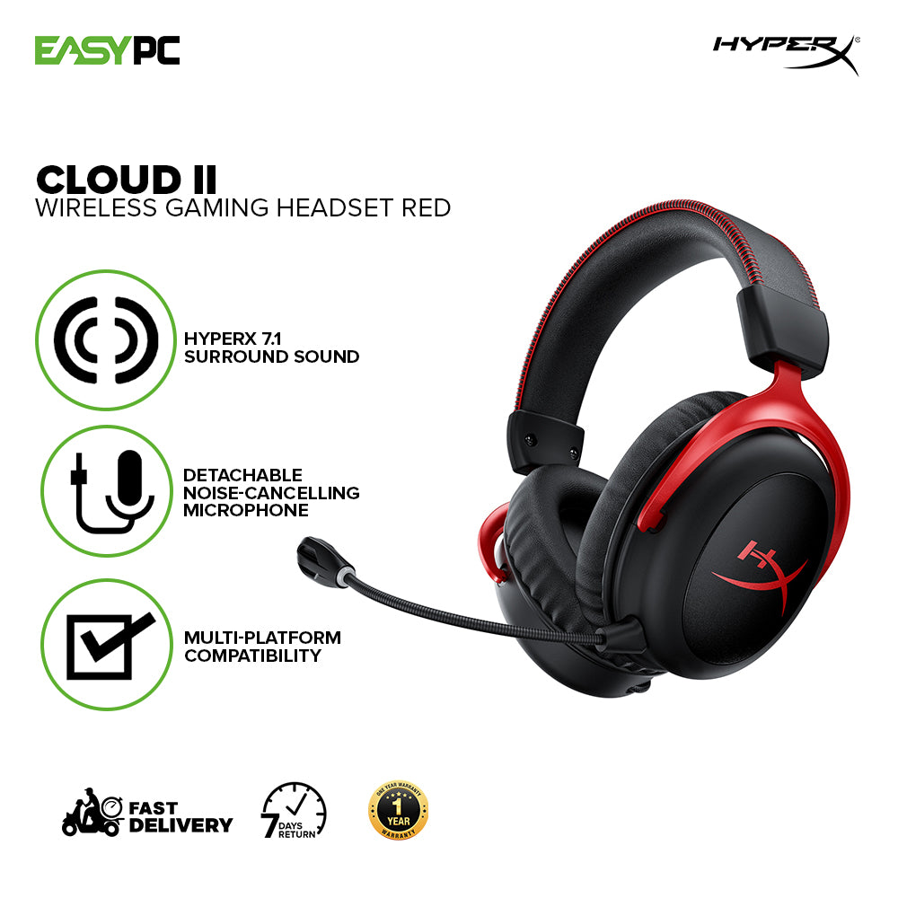 HyperX Cloud II Wireless, HyperX 7.1 Surround Sound, Detachable Noise-cancelling Microphone, 53mm Drivers, Built-in mic monitoring Durable, reliable, Great for WFH and Online Education Gaming Headset Red (HHSC2X-BA-RD/G) 1ION KIHH2321