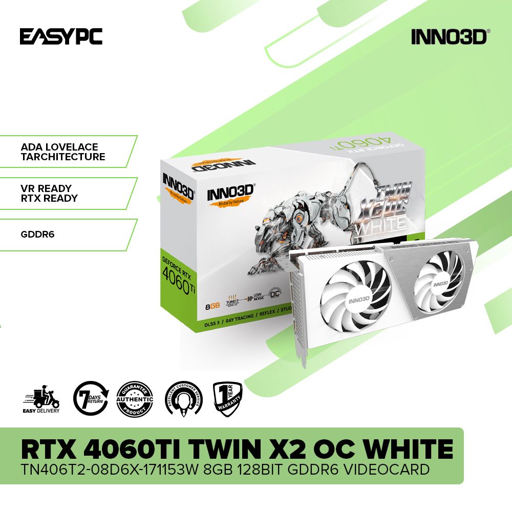 Unleash unparalleled graphics power with the Inno3D RTX 4060Ti Twin X2 OC White. 8GB GDDR6, 128-bit interface, and a sleek white design for a superior gaming experience. Elevate your visuals now!